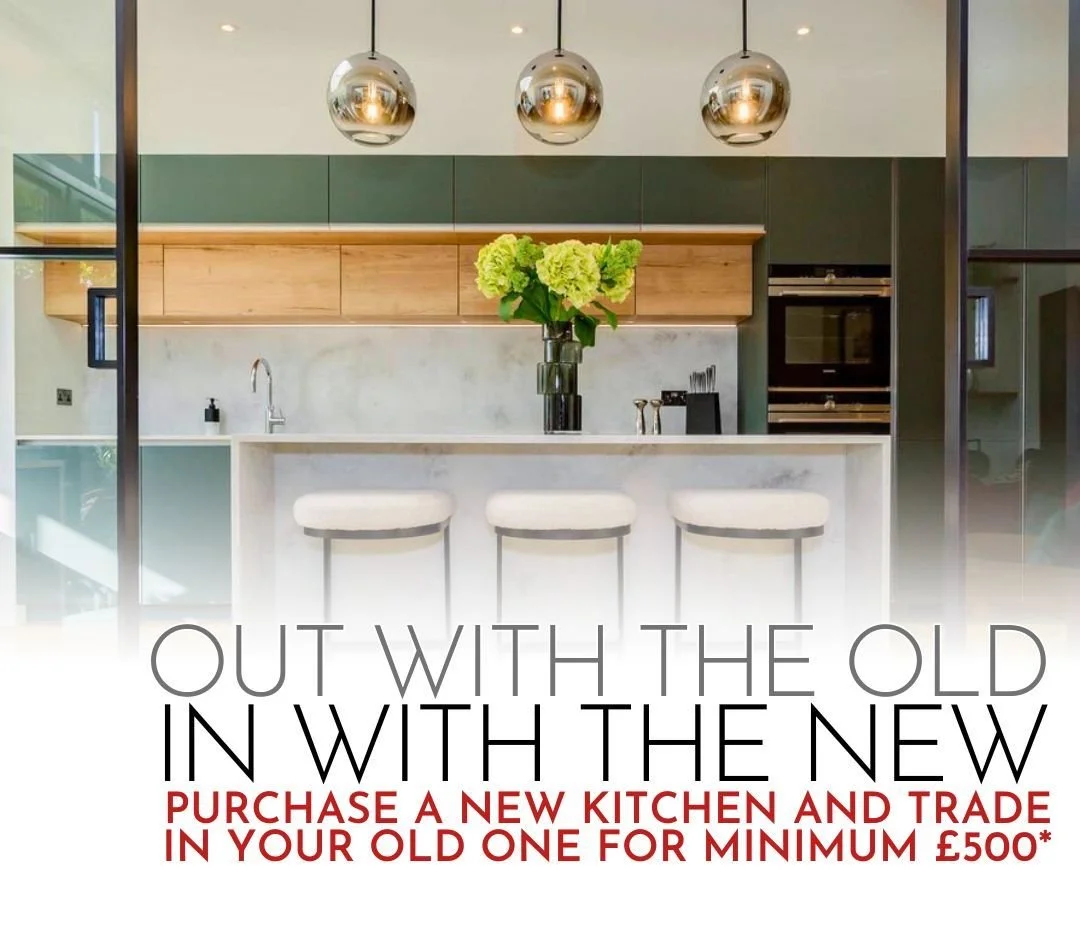 purchase a new kitchen and trade in your old kitchen for £500 or more