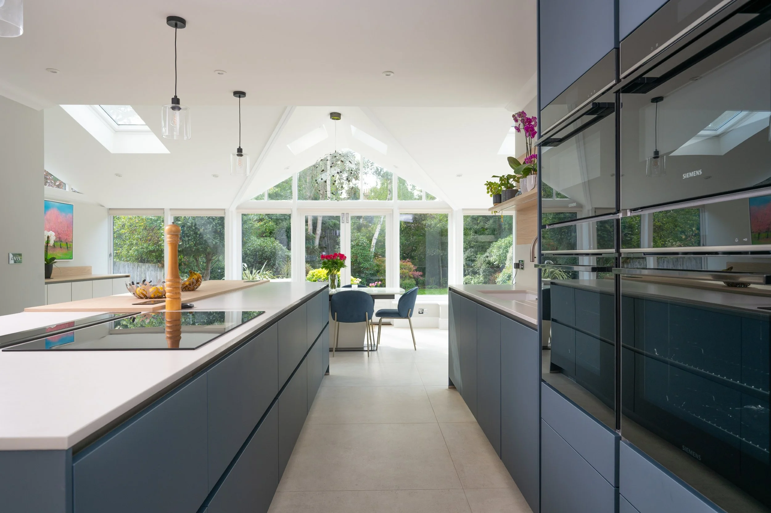 Our clients wanted a bright and open space that could be used for both everyday life and entertaining. With a preference for a Scandi-inspired look, we achieved this by choosing our handleless range in a stunning combination of Fjord Blue, Sand and Como Oak.